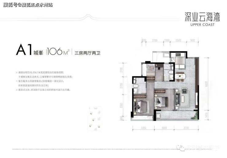 可售商品房面积段约106-116-143-178㎡,均为3梯5户布局;