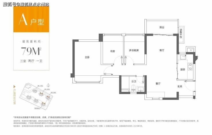 79㎡的3房2厅1卫,折后总价约207-226万,折后单价约2.62-2.86万/㎡。