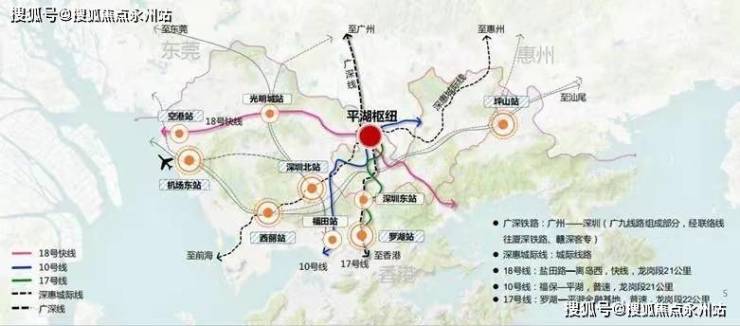 三地铁:区域内已开通10号线,规划中17号线以及18号线,南北串联罗湖中心、深圳站,东西贯通空港高铁站、沙头角口岸