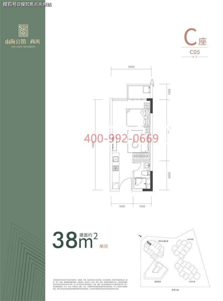 产品信息:约38㎡单间、约57—76㎡1-2房