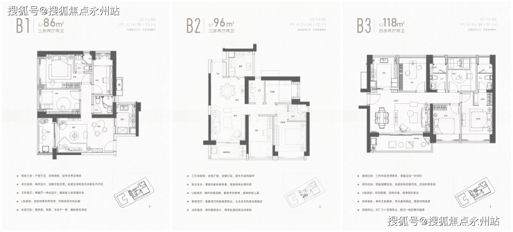 此次推出是刚需产品,面积86-96-118㎡的3-4房。户型设计中规中矩,但均为南向户型,且承重墙少,可以自由灵活改格局。