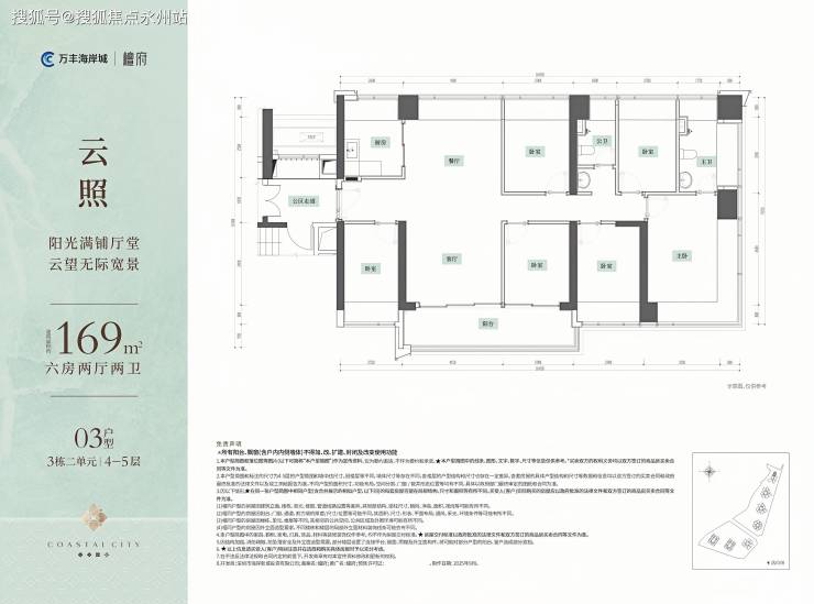 169m²的6房2厅2卫,折后总价880-991万/套,单价5.21-5.87万/m²。
