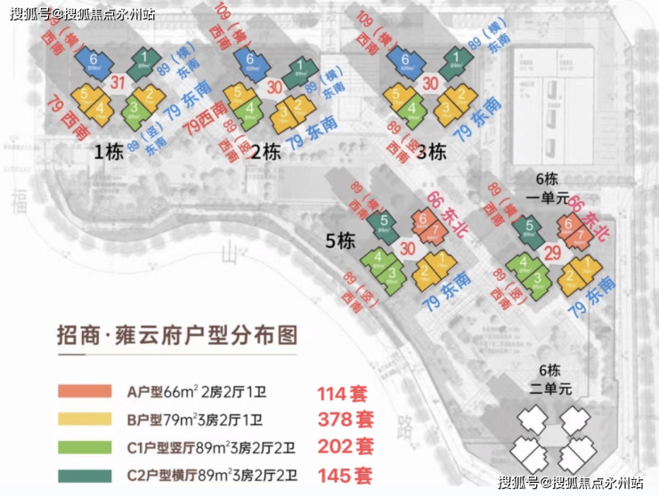 总规划1049户(其中商品房927户,公共租赁住房122户),停车位1050个(占比1:1),全部2梯6户设计。