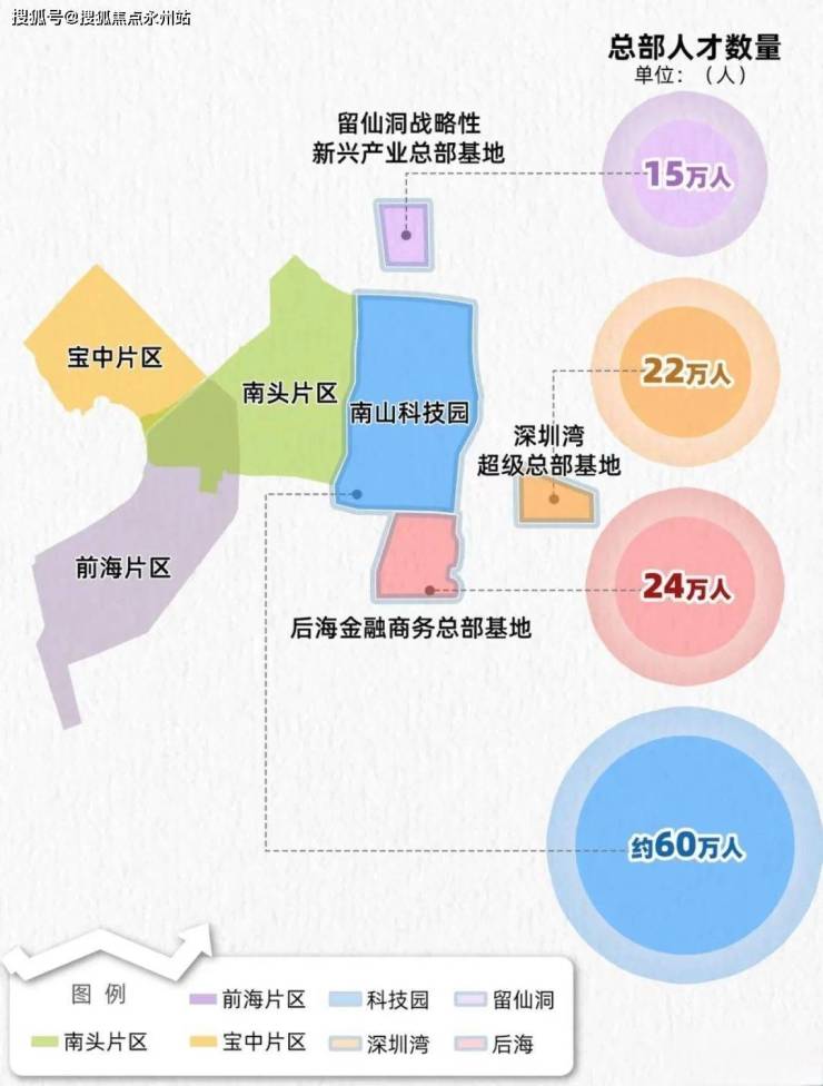 后海金融总部基地、深圳湾超级总部基地(东南向约6km):中国总部企业最为密集区域之一,规划就业人口约为54万人。