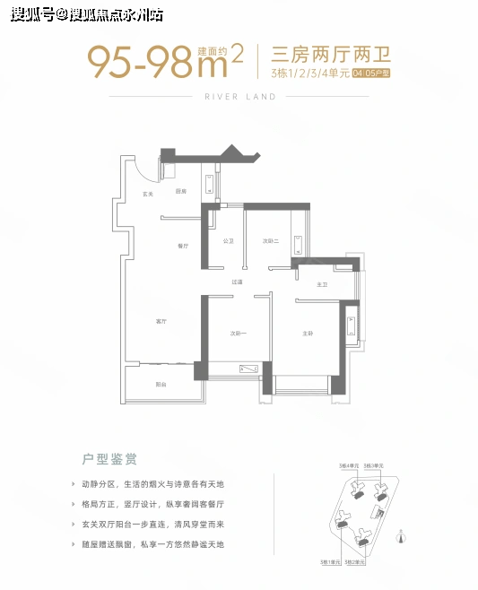 建面约95-98㎡3房2厅2卫
