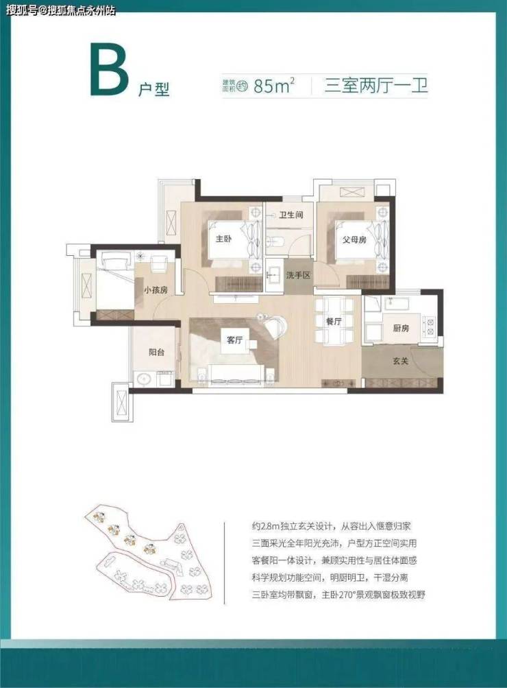 B户型3房2厅1卫