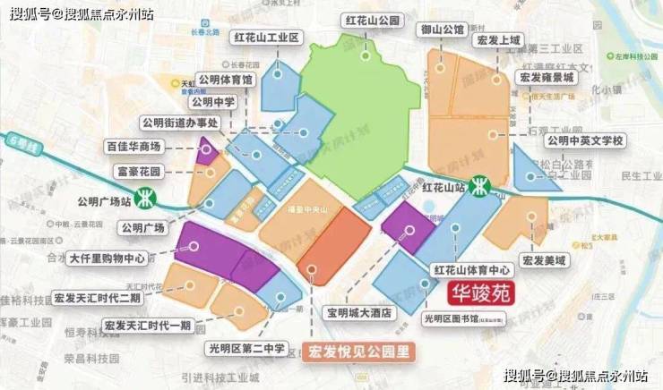华竣苑位于光明区马田街道新庄社区振明路与荣兴路交会处东南侧,在建发小巨蛋对面,边上是红花山体育馆。