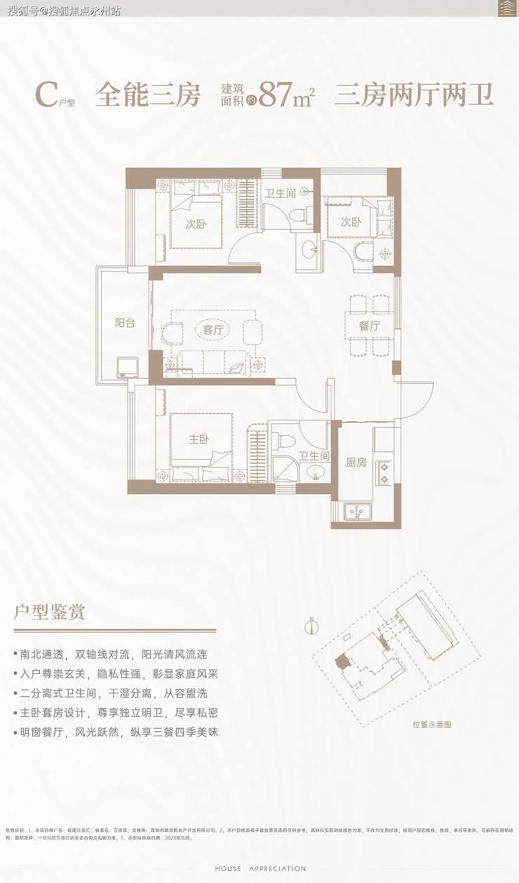 建面约87㎡ 三房两厅两卫(C 户型)