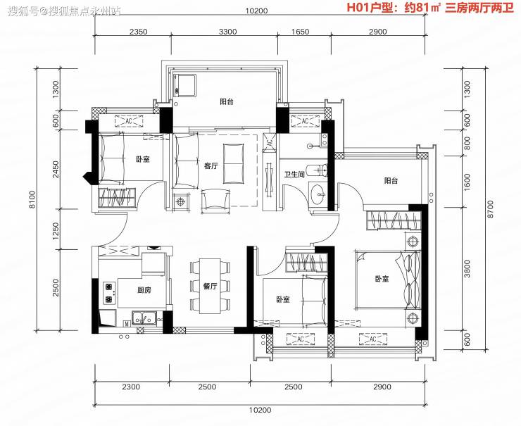约81㎡三房两厅两卫:堪称“空间魔术师”,实现了功能与舒适度的完美平衡,无论是三代共居还是二孩家庭,都能从容舒享。双卫生间设计,空间功能更优越,早晚高峰期不再拥挤,居家生活更高效。主卧独立套房,精巧三房也能私享私密与尊崇,满足年轻家庭对品质生活的追求。