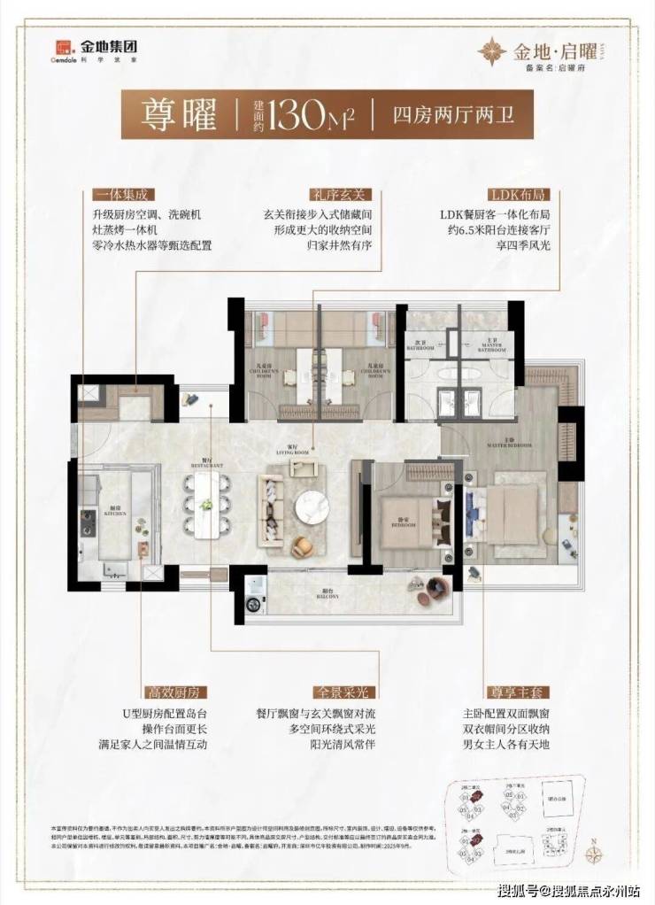 ●约130㎡横厅隐性过道四房两卫,南北通透格局,进门礼序玄关可做800库,LDK设计,五开间朝南,主卧270°转角飘窗,U型厨房,卫生间干湿分离,得房率约90%(包含赠送),客厅连接次卧出6.5米长的大阳台,东南朝向。