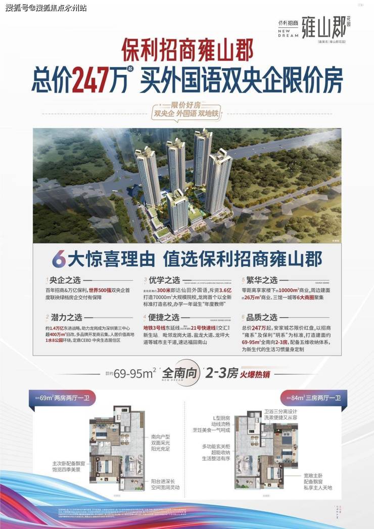 两大央企联手打造的保利招商雍山郡现打折清盘中,项目主推69-95平全南向2-3房,总价180万起就能上车双央企打造的双地铁盘,价格着实让人惊喜。