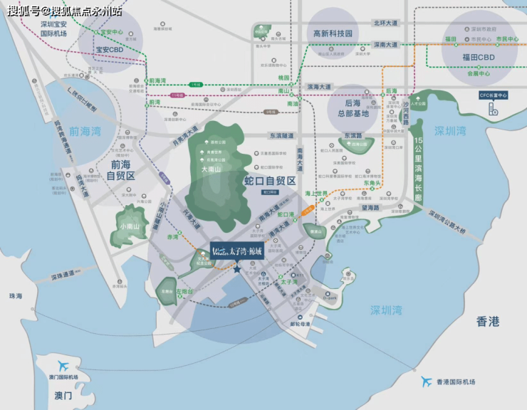 项目位于前海蛇口,集“粤港澳大湾区、社会主义示范区、前海蛇口自贸区、一带一路”四大国家级发展战略于一身,处热点板块深圳湾和前海湾重叠处,吸纳双湾优越资源。同时,随着2021年深圳十四五重大规划中蛇口国际海洋城的启动,太子湾前瞻布局战略性新兴邮轮产业,占据先天优势成为城市新一轮发展的起点,将推动区域不断向前发展。