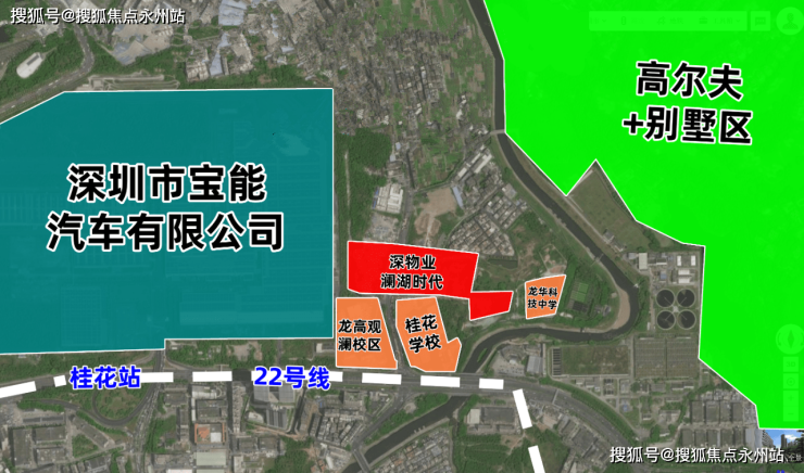 「澜湖时代景愉府」项目前身是观澜蚌岭旧改,位于龙华区观澜街道桂花路与观光路交汇处北侧约200米,南侧紧挨着桂花小学,东北侧是火湖新村,东侧是观澜湖,周边整体以工业园区为主,最近的地铁是正在动工的22号线“桂花站”。