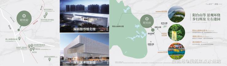 周边还有深圳美术馆新馆、深圳第二图书馆、展览馆演艺馆、简上体育馆、深圳书城(龙华城)等市政文化设施。距离约1.5公里处是2800万㎡的阳台山森林公园,周边还有龙胜公园、滨水绿地等休闲场所。