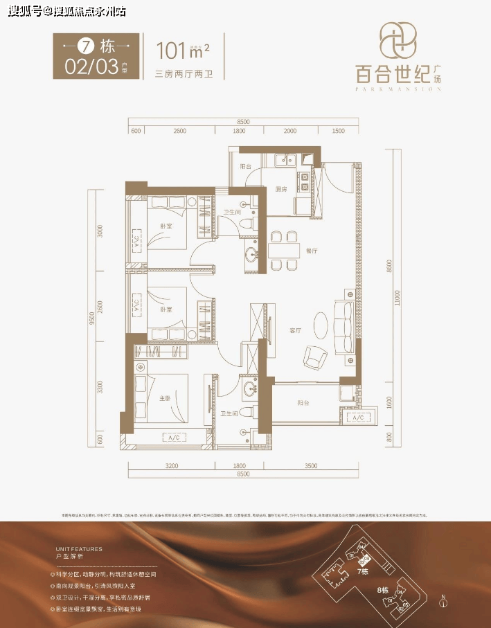 B-02地块:占地面积约3.6万㎡,总建筑面积约26.8万㎡,计容建筑面积19万㎡,容积率5.32,绿化率40%,共规划3栋7个单元住宅,1栋商务公寓,1栋办公楼,1所幼儿园;其中1栋1单元商品房43F,1栋2单元商品房47F,2栋1单元商品房46F,2栋2单元商务公寓29F,2栋3单元办公楼22F,2栋4/5单元商品房48F,3栋1/2单元商品房31F。规划停车位1389个。百合世纪广场_Vip Tel:400-992-0669 中介勿扰