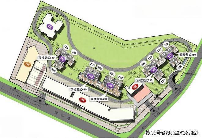 一期:1栋99.7米32层住宅丨5栋19.65米,4层商业、社区健康服务中心。6栋12.55米两层商业丨7栋13.45米三层幼儿园。