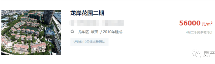同小区的二手房,龙岸花园参考价56000元/㎡,挂盘均价在7.71万/㎡,近期成交均价在6.16万/㎡左右。