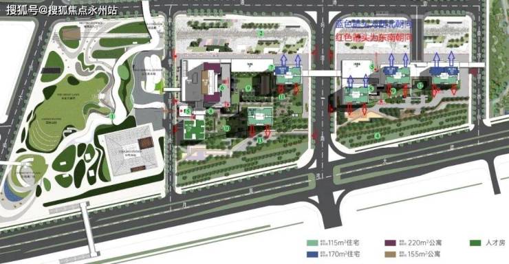 户型朝向方面,项目就只有东南和西北两种朝向,115㎡户型两种朝向都有,只是东南朝向占比要高些;170㎡户型就只有西北朝向,这也就意味着如果想要大户型,就必须就朝向问题妥协。