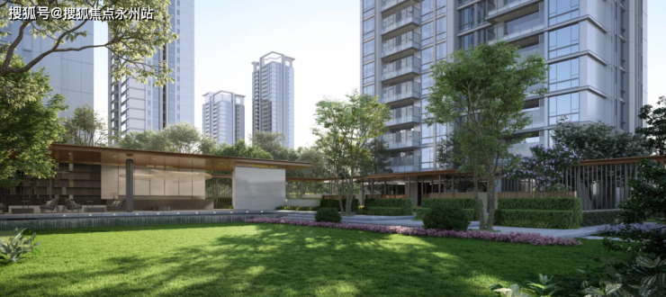 园林细节非常考究,内部运用叠级花园的手法,外围设计了宽约30米(为建筑尺寸)的线性园林,打造层次多元化立体园林。