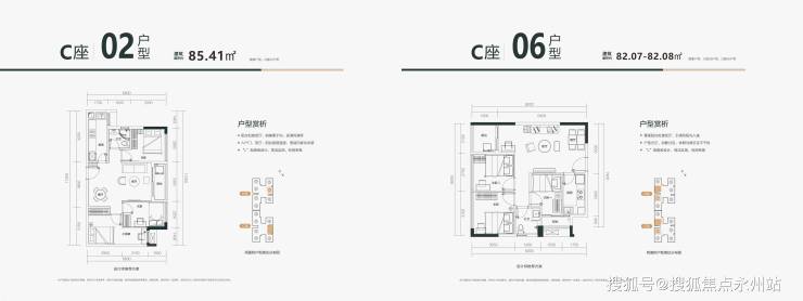 C02户型:约85㎡双龙抱珠 风水好房,总价170万起,户型呈双龙抱珠格局,风水属性突出