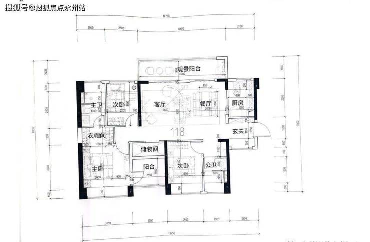 3梯6户,户型为88㎡1户,98㎡横厅1户、竖厅3户,118㎡1户;