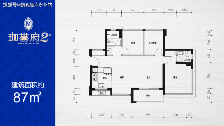 | 约87㎡(横厅)三房两厅两卫 折后总价约445-458万