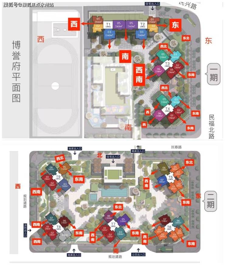 【鸿荣源博誉府】共9栋,一期T1-T4,二期T5-T9栋,共1758户(一期772套,二期986套),有82套保障性住房,二期有约85-126㎡3-4房。