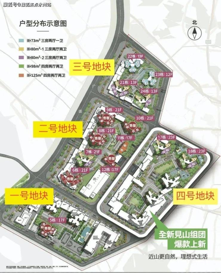 目前加推的是四号地块的17栋和18栋,总共264套房子,2T6户,总层高位23F;二号地块有部分大户型在售,三号地块小高层还有楼层可选。