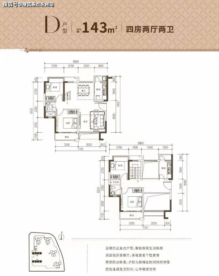 143㎡的复式4房2厅2卫,可以改5-6房没问题,客厅4.5米开间,挑高6.3米,一层两户,总高9-10层的小洋房,南北通透。