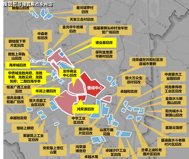 (片区约4个百万体量、7个50万以上体量旧改;如中洲、德业基、卓越、华润等一线房企)