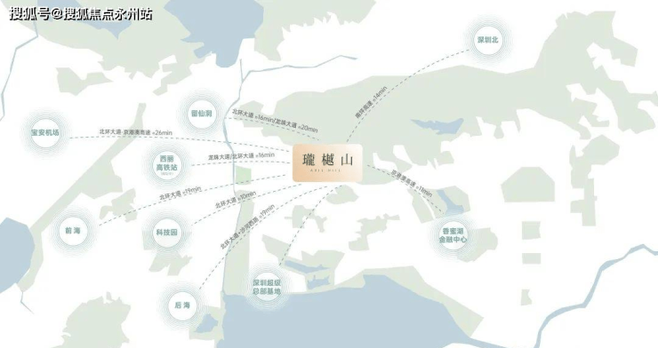 中心区域:深圳山海城中轴,左手香蜜湖、右手华侨城,六大总部基地环伺