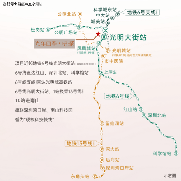 3地铁:6号线光明大街站 、6号线支线、13号线(在建中,一期南段预计今年年底开通)