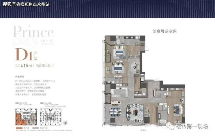 大平面大尺度定位,层高约3.6米,横厅设计确保最大化观景面,全户型纵享环幕视野。项目打造主力建面约215-415㎡纯粹品质公寓共191席,顶层为建面约1270㎡公寓产品。