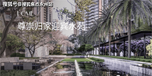 迎宾水苑由跌级水景、灵动涌泉、景观雕塑、花园会客厅构成,伴着清脆的流水声,打造层层递进的景观空间,让业主感受到归家的尊贵与仪式感。