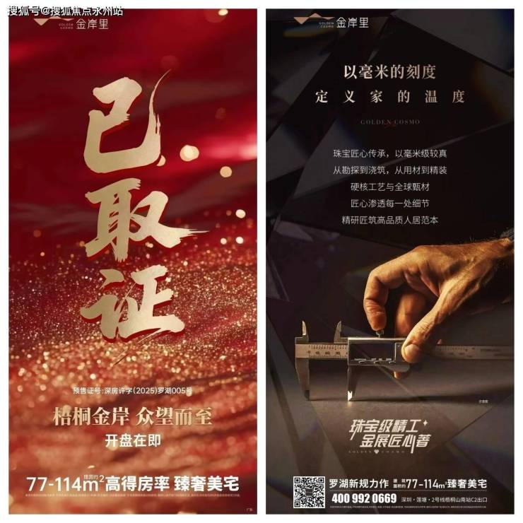 深圳罗湖【莲塘金岸里】已于9月19日正式取得预售许可证,并计划于9月27日开盘入市,首推1栋A座1/2单元共360套住宅房源,涵盖77-114㎡精装2-4房户型,预计2026年12月带精装交付。