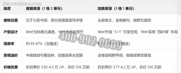 刚需客户:优先选择3栋1单元 88㎡东南向房源,折后总价340万起,月供约1.2 万(首付 3 成、利率 4.1% 测算),兼顾总价门槛与采光通风。