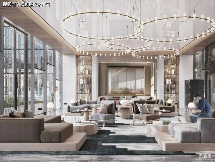 双云端会所,分别位于26层及38层,将作为生活与艺术无界相融的社交领域,给予业主在“云端”享有会客、健身、休闲与艺术等多功能体验。