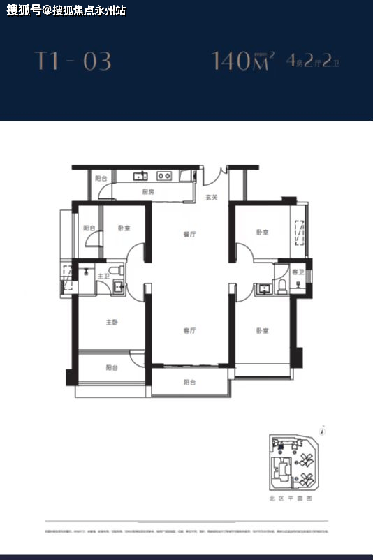 1栋2栋03户型140㎡4房2卫(单价7.8-8.2万总价;1090-1150万)