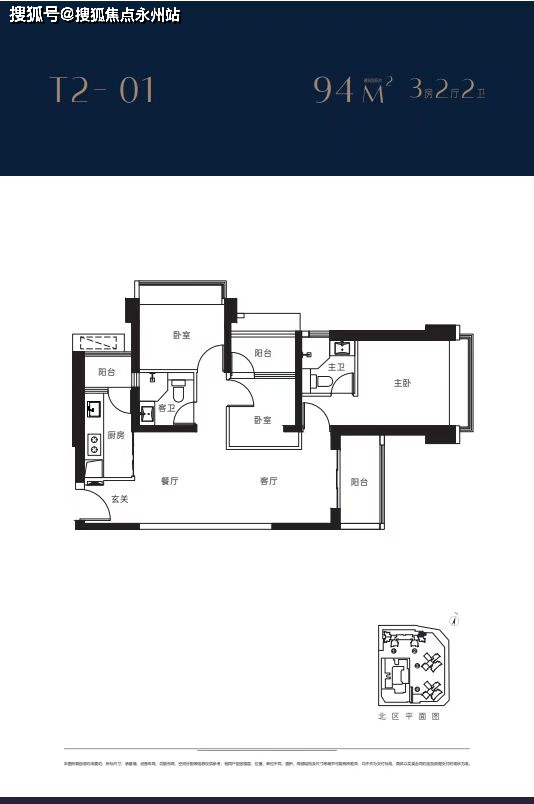 3栋4栋01/02户型96㎡3房2卫(单价:7.2-7.5万总价:695-720万)