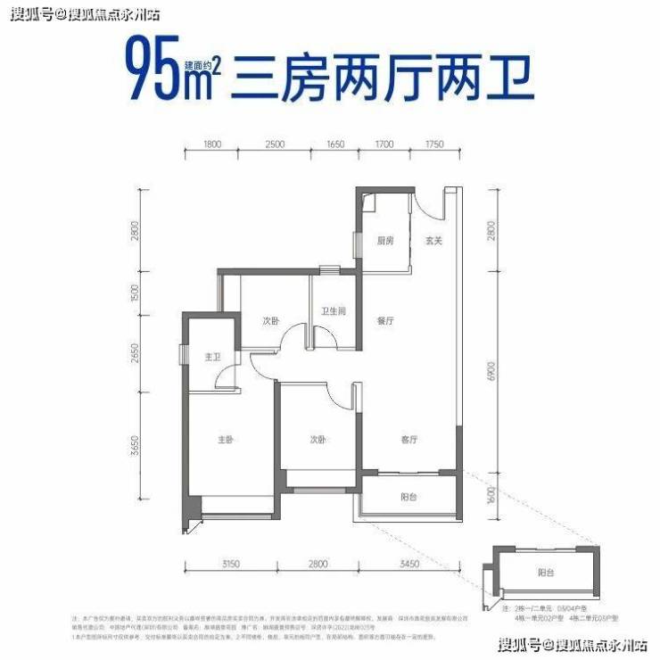 建面约95㎡三房两厅两卫