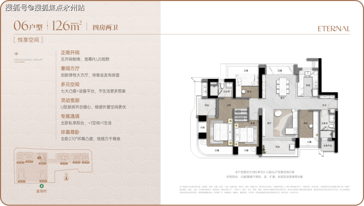 270° 环幕视野:所有主卧均配备 270° 环幕凸窗,不仅提升了采光效果,还带来了极佳的观景体验,部分户型可实现三面采光。