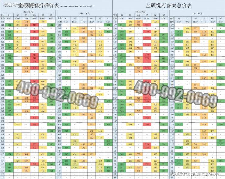 开盘9个点折扣,折扣系数:0.99*0.96*0.98*0.98≈0.913折,折后均价4.23万/㎡,折后单价区间3.94-4.55万/㎡,总价区间344-713万。