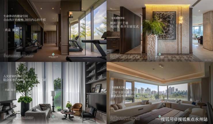 内部园林核心设施:天际泳池,巧妙设置在台地之上,与公园形成一体,模糊了建筑与自然的界限,下沉式会所:包含健身房、瑜伽室、更衣室等设施