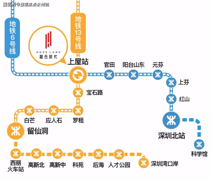 双地铁枢纽:接驳6/13号线(建设中)上屋站枢纽处。13号线、6号线上屋站B出口直连项目。13号线为市域快线,自项目约20分钟直达南山科技园,约30分钟直达深圳湾口岸;6号线约15分钟直达深圳北站。约30分钟到达福田CBD。