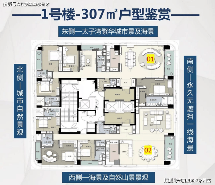 稀缺纯大平层(233-307㎡)公寓产品,通燃气,带阳台(户户三阳台),户户270度三面景观,南北通透,朝南看海;以比肩世界顶级奢居标准,及鲸系科技系统,成就湾区一线恒定资产,为塔尖人物量身定制,打造高端纯粹顶贵圈层。