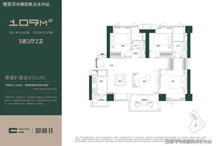 96㎡三房两厅一卫(竖厅设计)经典竖厅,动静分区,双阳台设计,西南向(看深圳湾海景)/东北向(看高尔夫及城市景观)