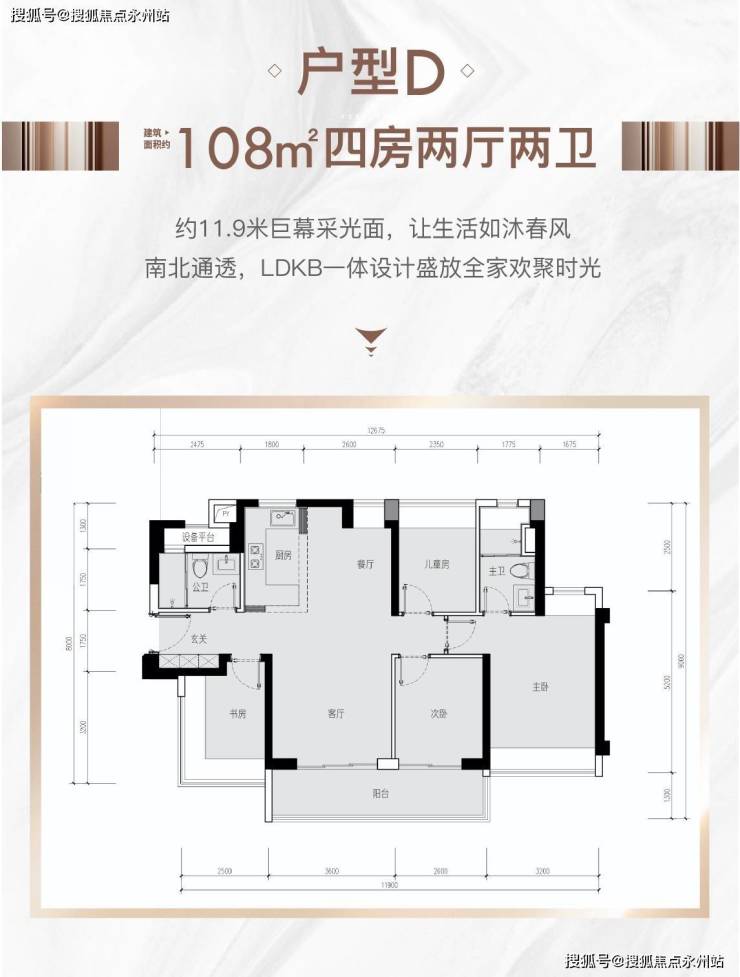 建面约108m²的户型:一步到位购置4房,该户型南北通透,约6.2米观景阳台,除了可以坐在这里晒太阳喝茶,还能放置花草、健身器材……无论是修养身心还是锻炼身体都是不错的选择。