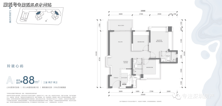 ●深圳少有的建面约88㎡3房2卫户型,约3.6米面宽观影客厅,打造家庭私家专属影院