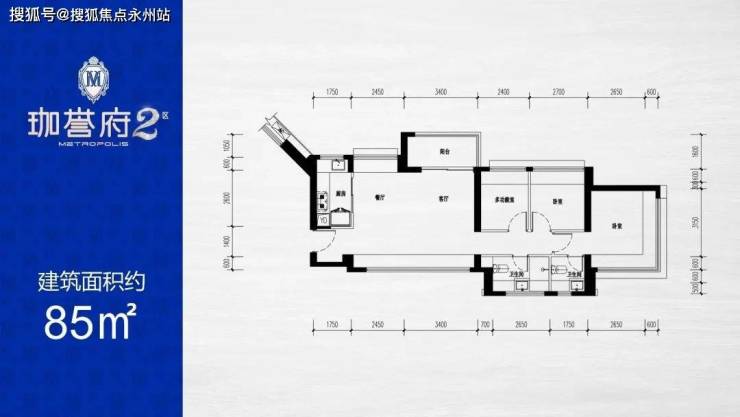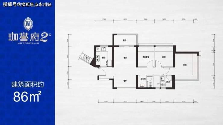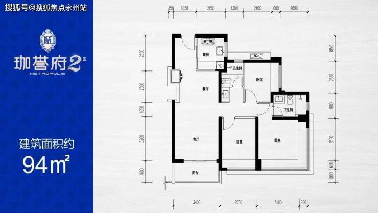 94㎡3房2厅2卫:120平户型的缩小版,也是传统竖厅格局