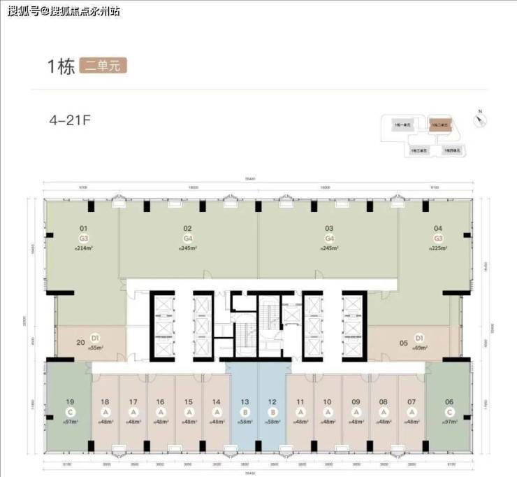 1单元、2单元商办产品:48--71--95--205--225--245--256(三至四房)